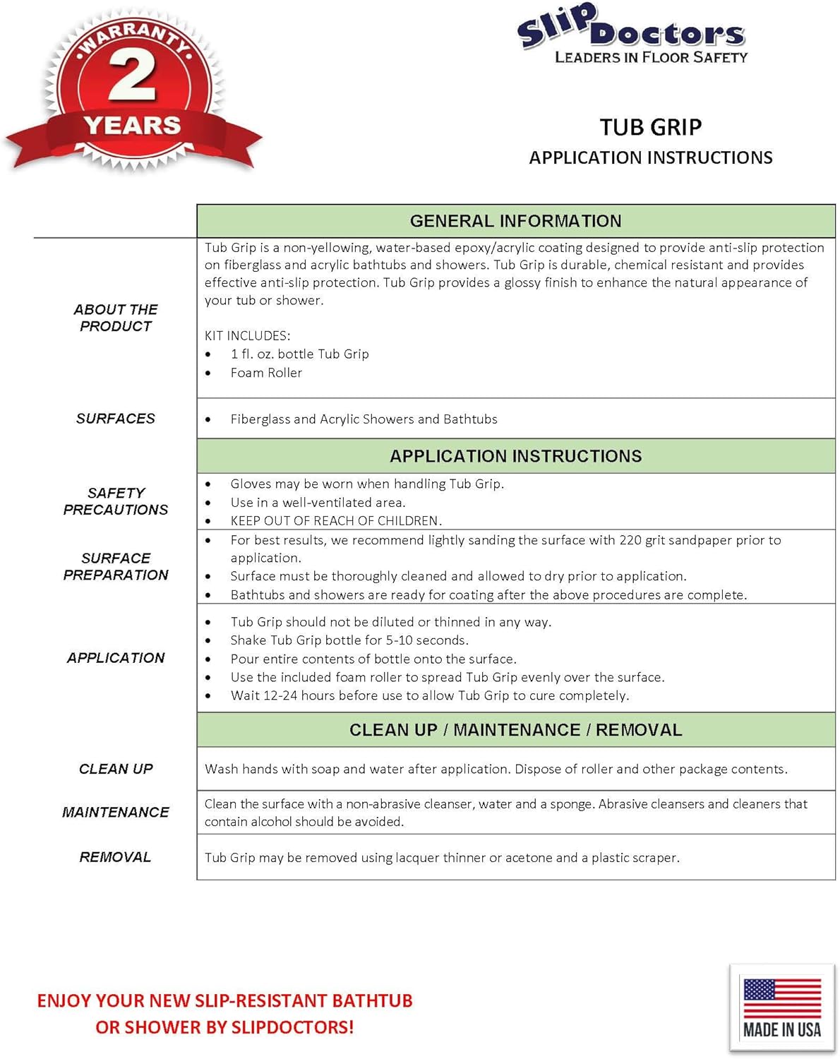 Most bathtub refinishing products do not allow the use of a bathmat anti slip bathtub. This convenient coating is the perfect solution for wet or slippery areas such as bathtubs and showers, tile areas, concrete floors, gyms, spas and more.